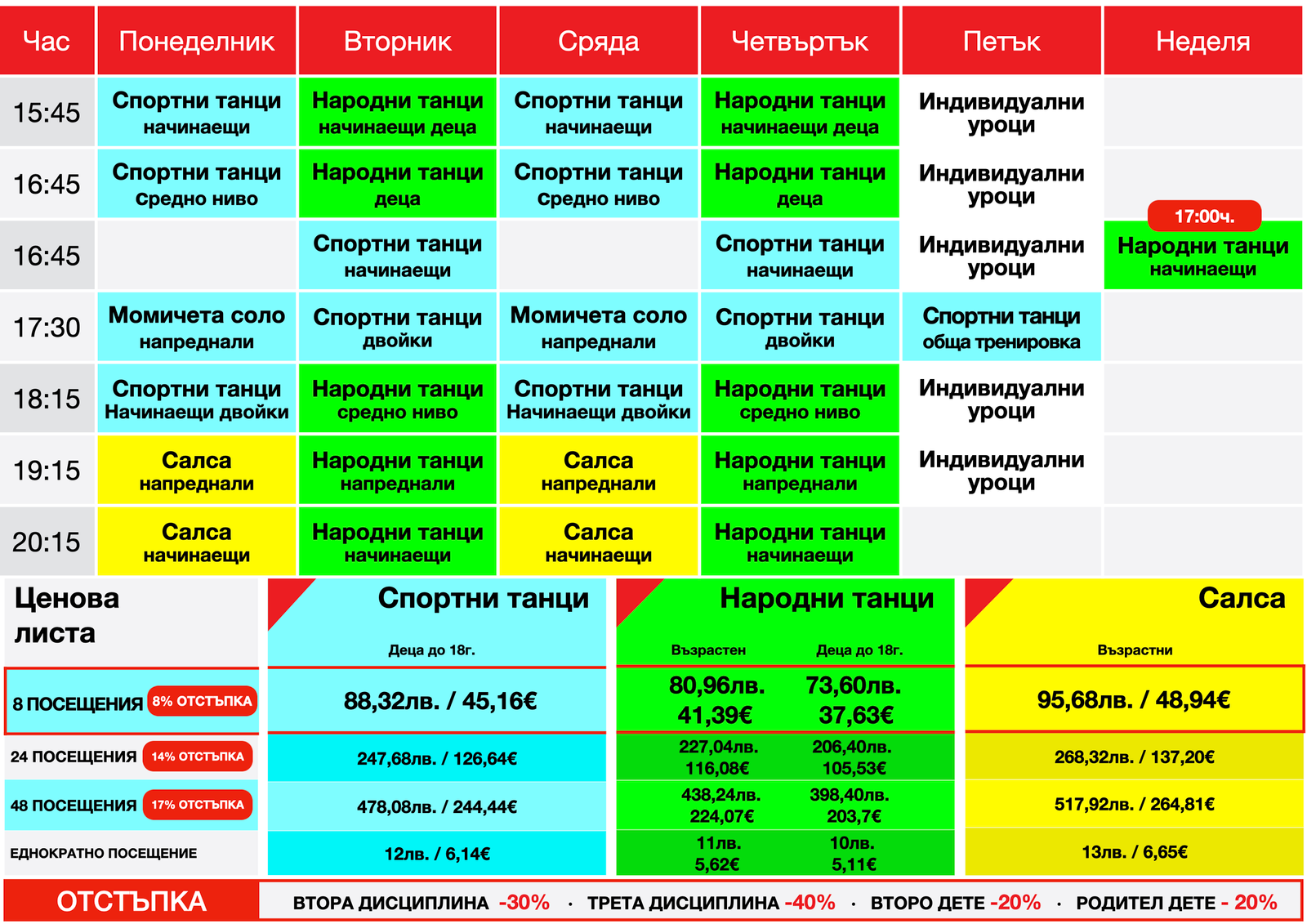 Бални танци, латино танци народни танци, салса, бачата, гръцки танци.