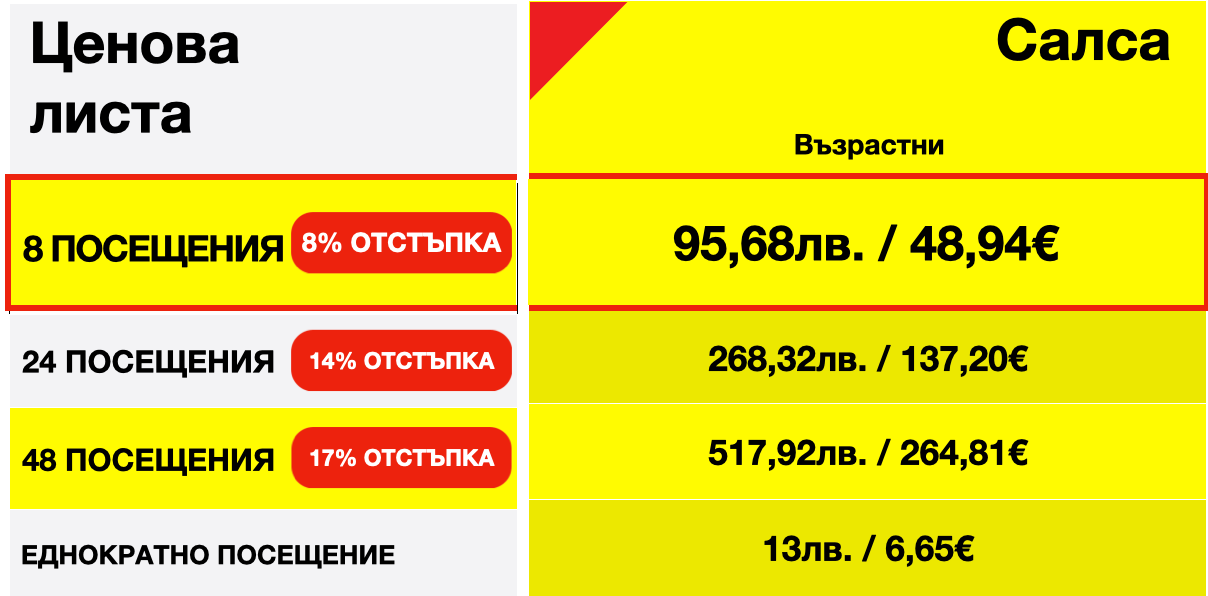 Всеки учи с различно темпо, но обещаваме, че още след първите няколко урока ще можете да танцувате основните стъпки! Ако посещавате редовно нашите класове и социални танци, ще усетите значителен напредък много бързо.