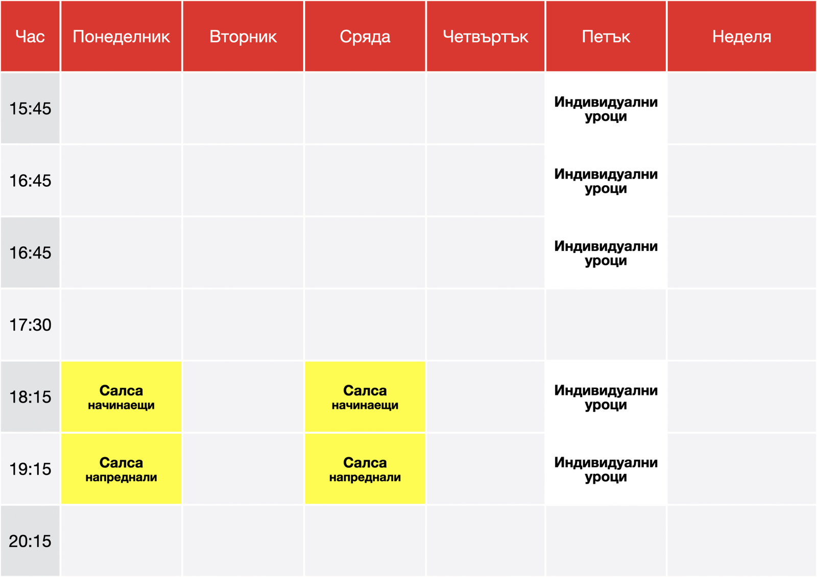Тук можете да разглеате как преминават часовете, състезанията и забавленията